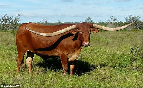霸气的牛 世界上最长的牛角2.7686米(图)